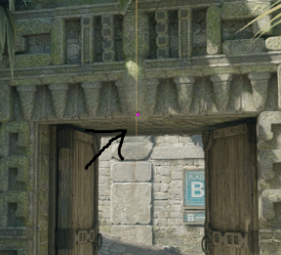 Inn i hjørne, line opp med hjørne på bue ved inngang